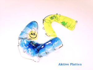 Diese herausnehmbaren Apparaturen können die Zahnbögen ausformen, Platz für verlagerte bleidende Zähne schaffen und die Bißlage einstellen.